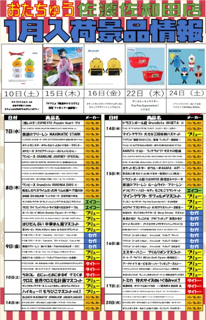 🗓️新入荷景品カレンダー🗓️⛄…