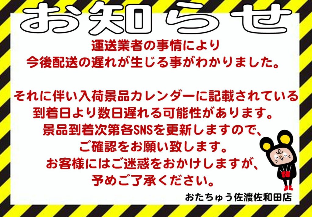 【お知らせ📢】 運送の影響により、景品入荷が遅れる可能性がご…
