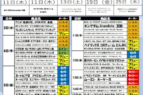プライズSNS更新いたしました!★12月入荷景品カレンダー★